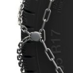 Die König XG Cross ist mit einem speziellen selbstspannenden Befestigungssystem ausgestattet. Dank des flexiblen Kabels, das hinter dem Reifen auf dem Boden gleitet, werden alle Kettenteile miteinander verbunden, ohne das Fahrzeug bewegen zu müssen. Sobald die Schneekette am Reifen montiert ist, ist kein weiterer Halt mehr erforderlich, um sie zu spannen. Mit dem ATC-System von König wird die optimale Spannung und Zentrierung der Kette auf dem Reifen automatisch beim Fahren erreicht.